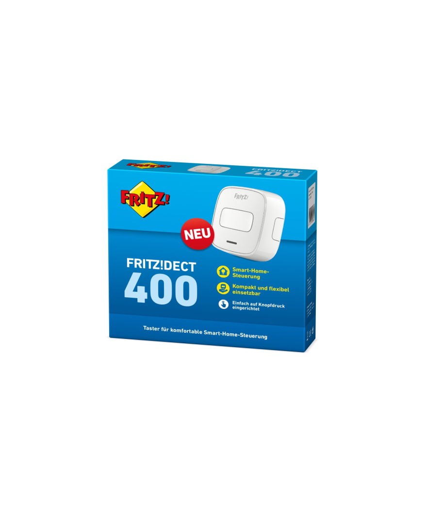 De FRITZ!DECT 400 is een uitbreiding op het FRITZ!DECT Smart Home assortiment. Met de FRITZ!DECT 400 schakelaar schakelt u met één druk op de knop apparatuur aangesloten op de FRITZ!DECT 200 en / of FRITZ!DECT 210.