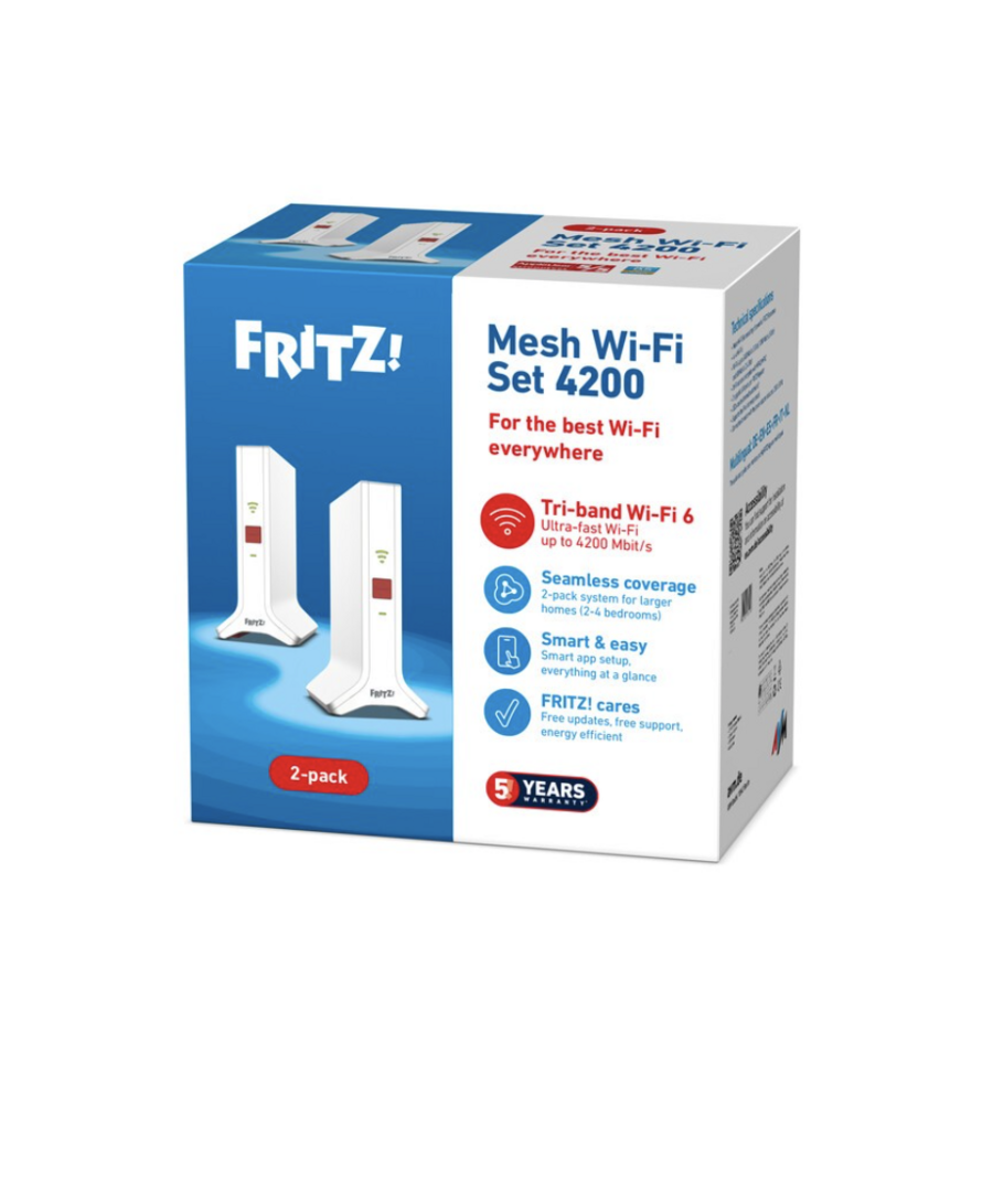 Nieuw: Het nieuwste MESH set van FRITZ! Helemaal klaar met WiFi problemen en lekker riant behuisd? Met deze FRITZ!Mesh set duopack ben je in 1 x klaar met WiFi 6!
