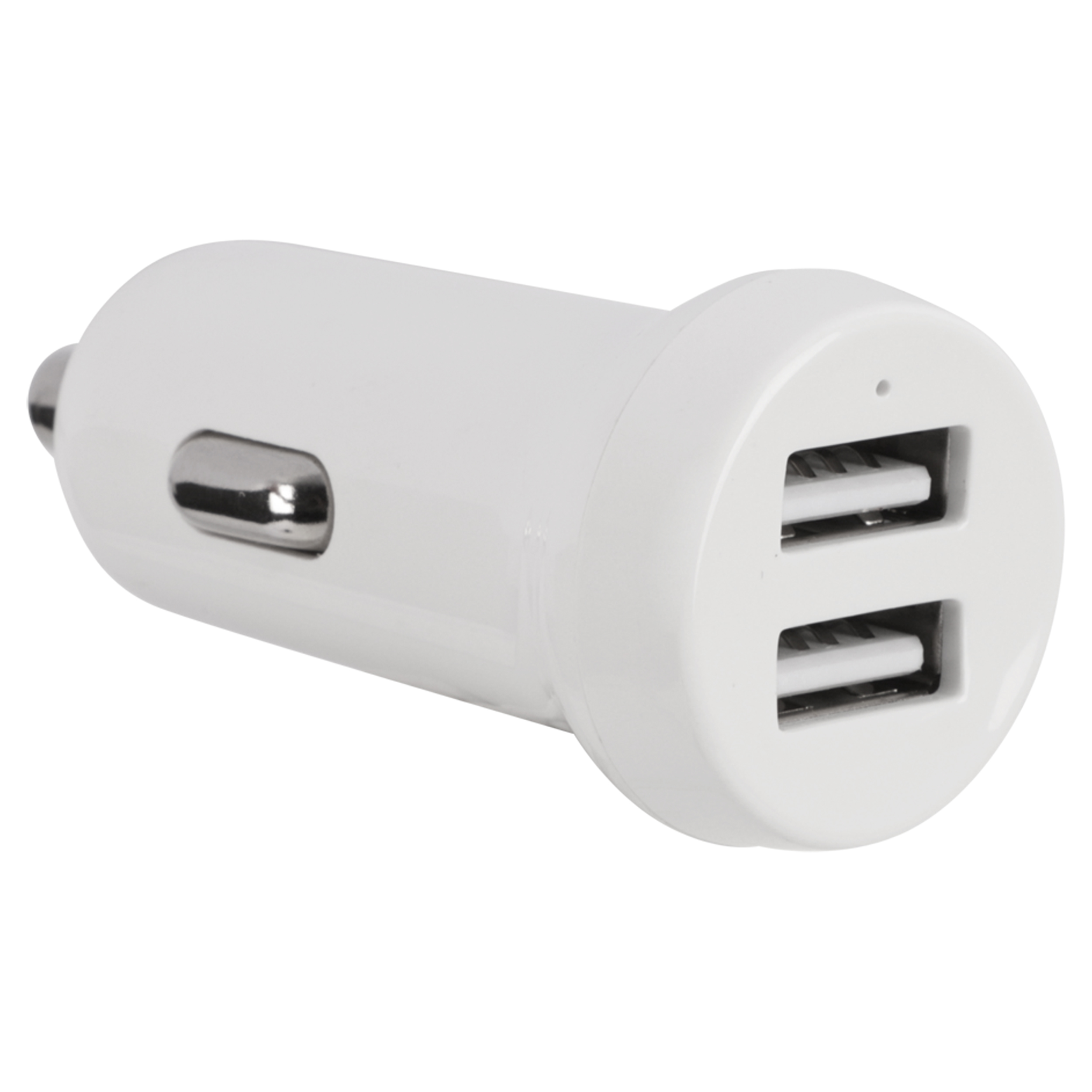 Q-Link autolader, geschikt voor 12-24V, met 2 USB-poorten. Output: 5V, 2.4A. Ideaal voor het opladen van twee apparaten tegelijkertijd. Kleur: wit.