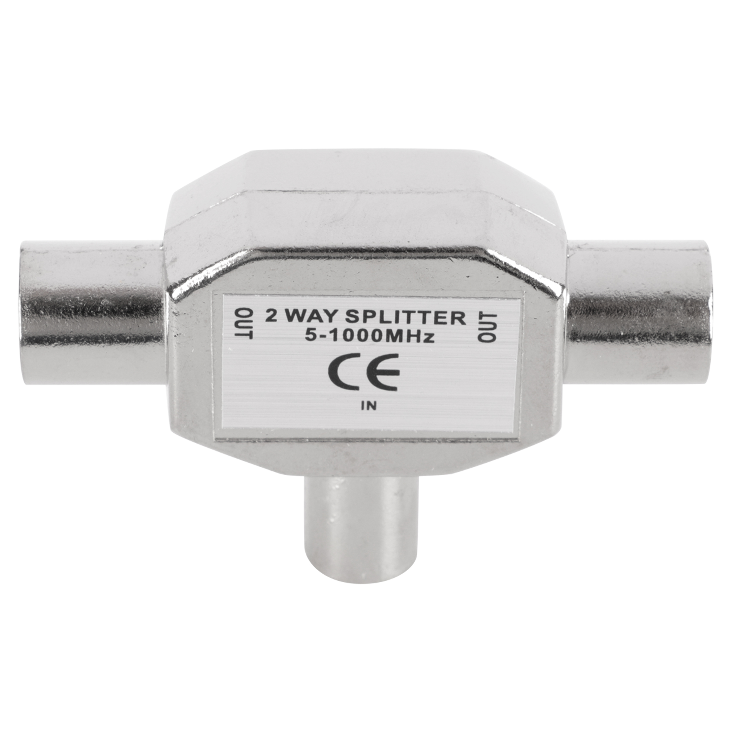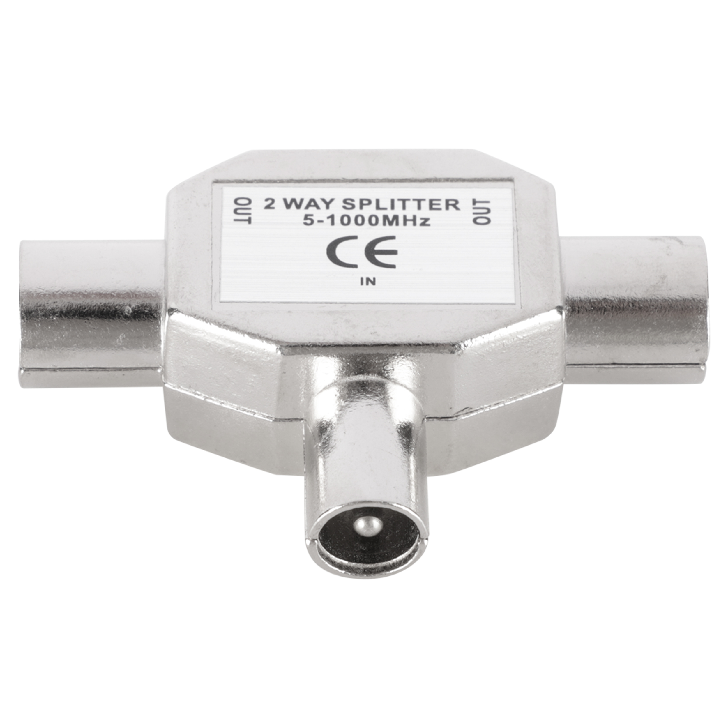 Q-Link COAX splitter. 9 mm. Met 1 splitter en 2 stekkers (male). Voor het uitbreiden van 1 male naar 2 female aansluitingen. Male of radio-stekker is met dichte middenpen. Female of TV-stekker is met open middenpen.