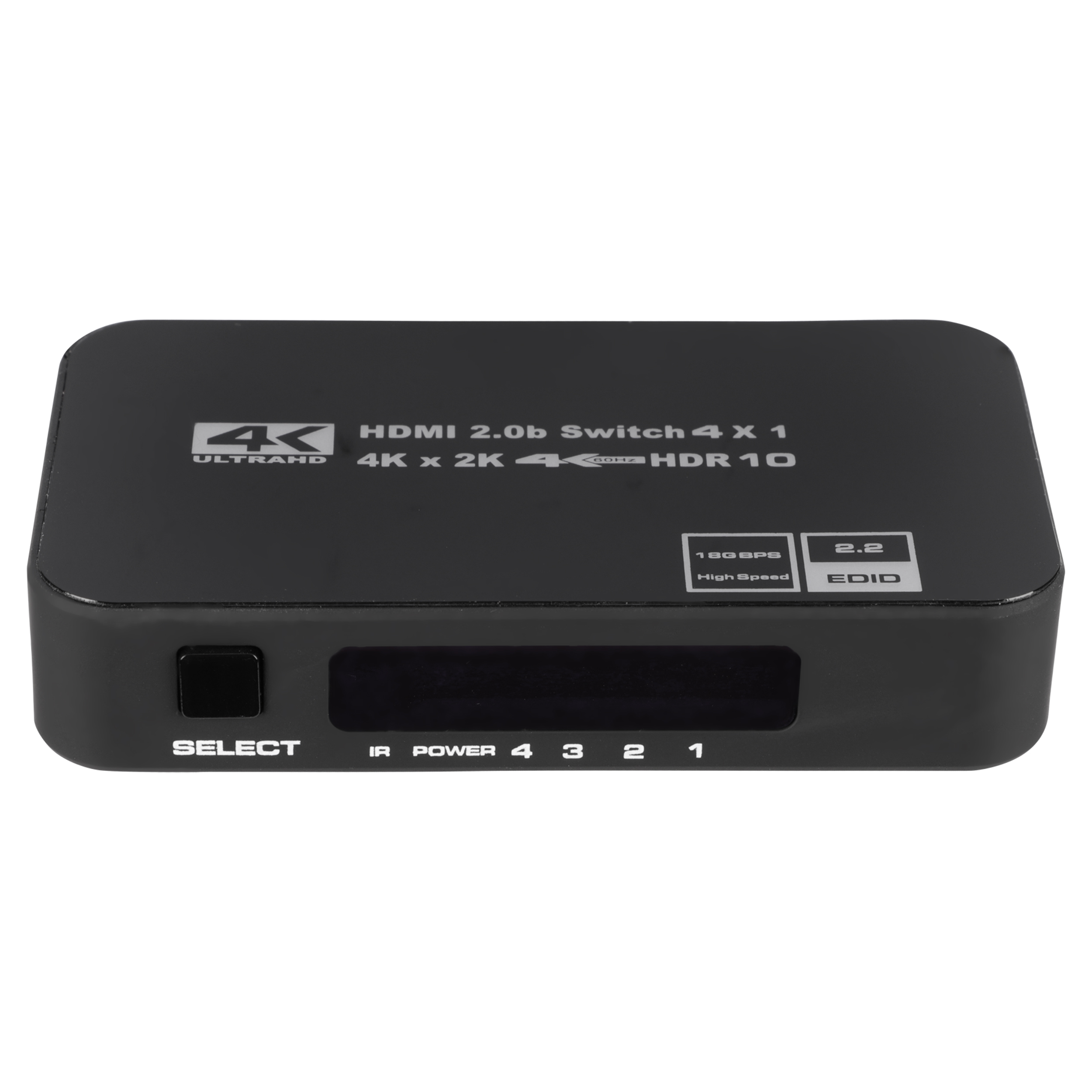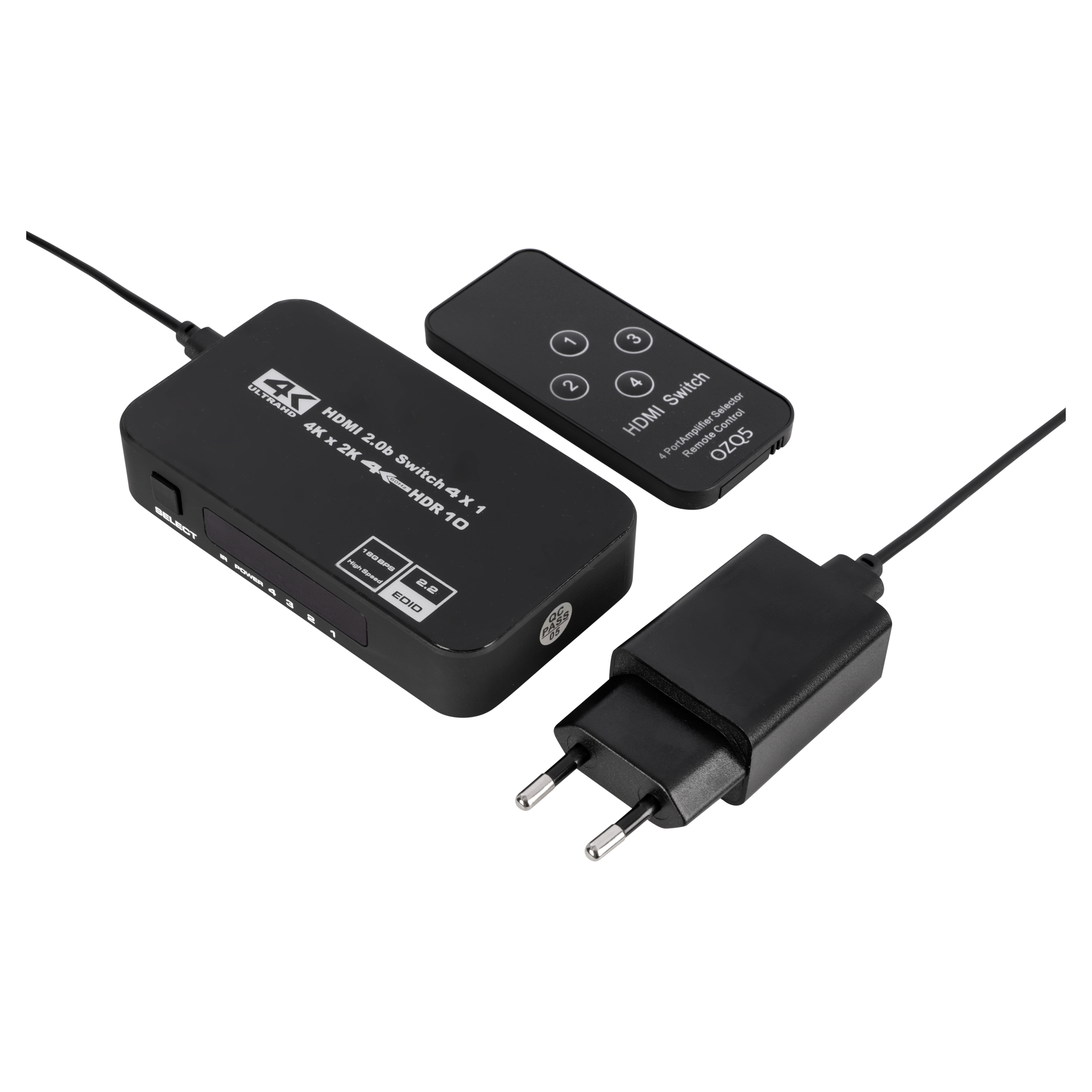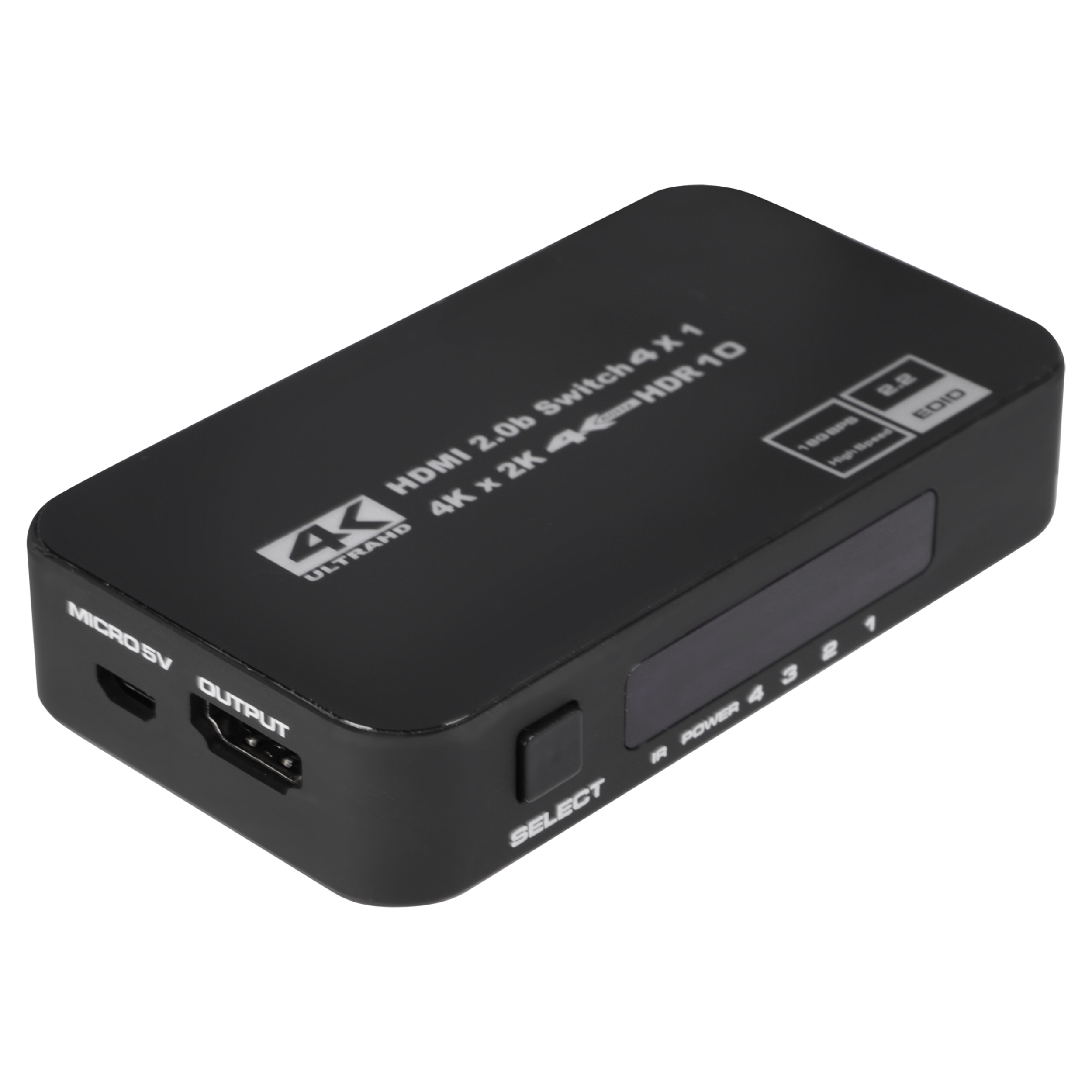Q-Link HDMI switch, HD, 4 ingangspoorten, 1 uitgangspoort, 4K/60Hz, zwart. HDMI switch met afstandsbediening voor het delen van een HDMI-aansluiting en wisselen tussen aangesloten apparaten. Geschikt voor een verscheidenheid aan HDMI-bronnen.
