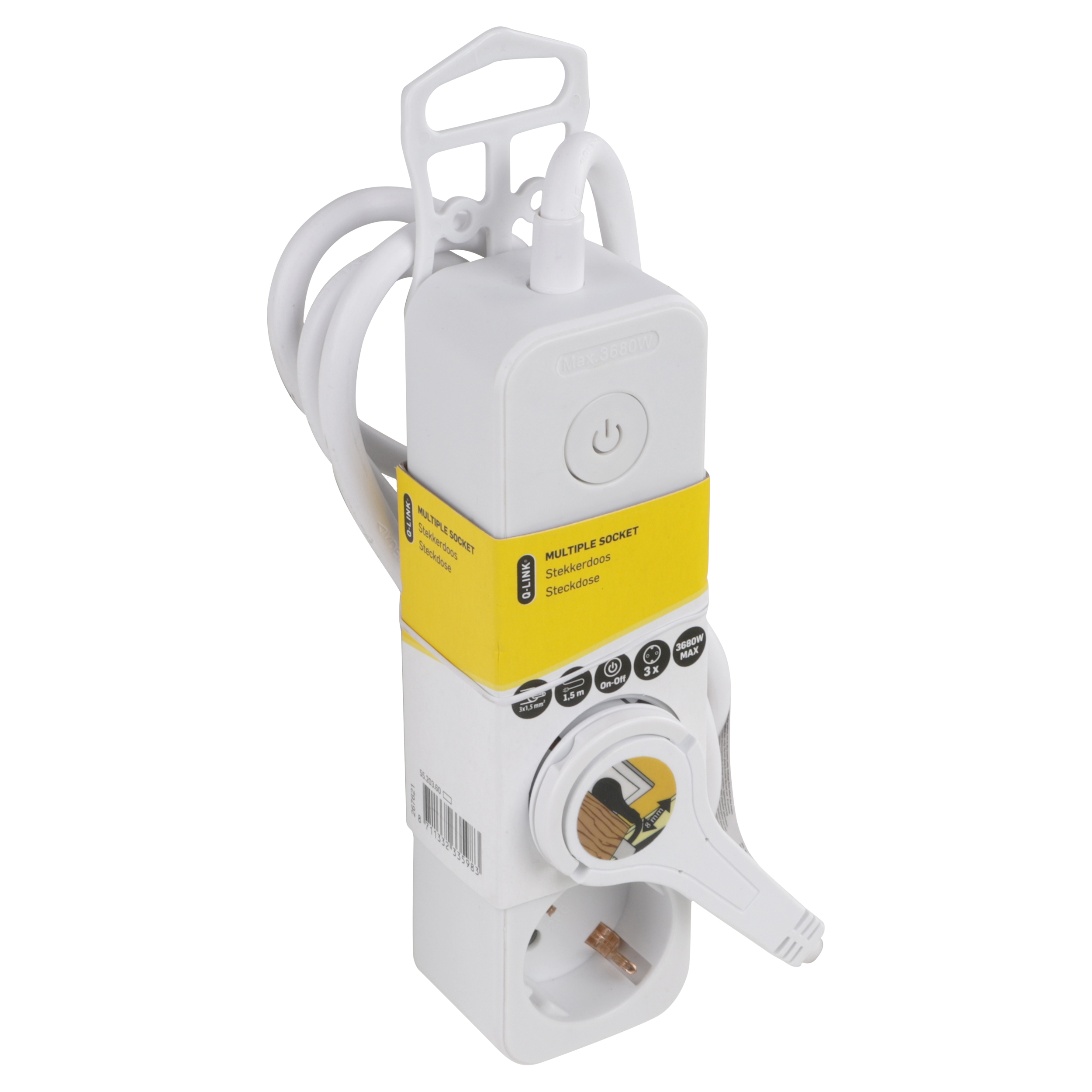 Q-Link stekkerdoos – 3-voudig – met schakelaar – plat – 3 x 1.5 mm² – 1.5 m – PVC – wit