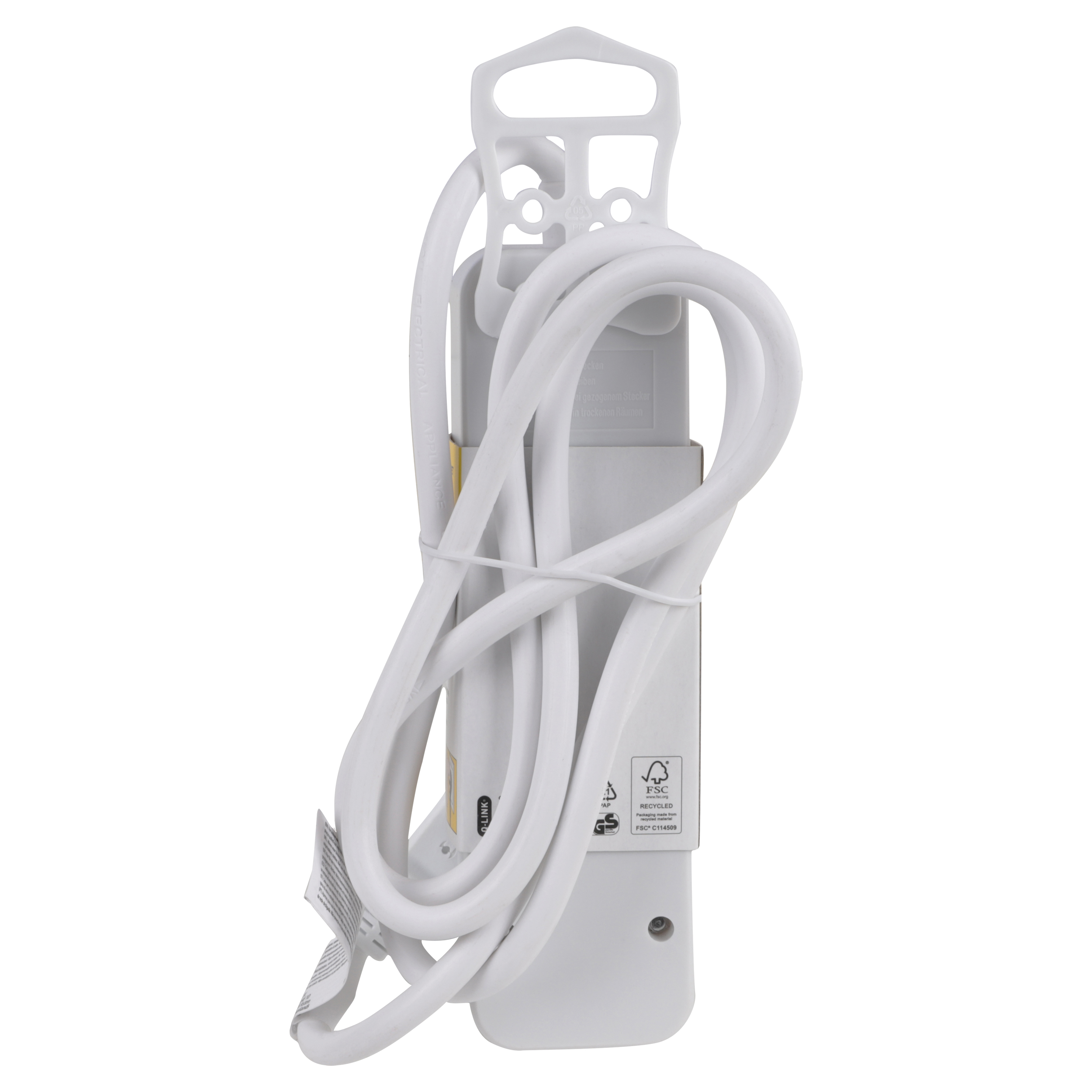 Witte 3-voudige stekkerdoos. Met een platte stekker van 8 mm is deze ideaal voor achter een kast of audiomeubel. Met randaarde. Alleen voor binnengebruik in droge ruimten. Alleen voor huishoudelijke apparaten. Vinyl kabel 1.5 m, 3 x 1.5 mm². Maximaal 3680 Watt. Met schakelaar.
