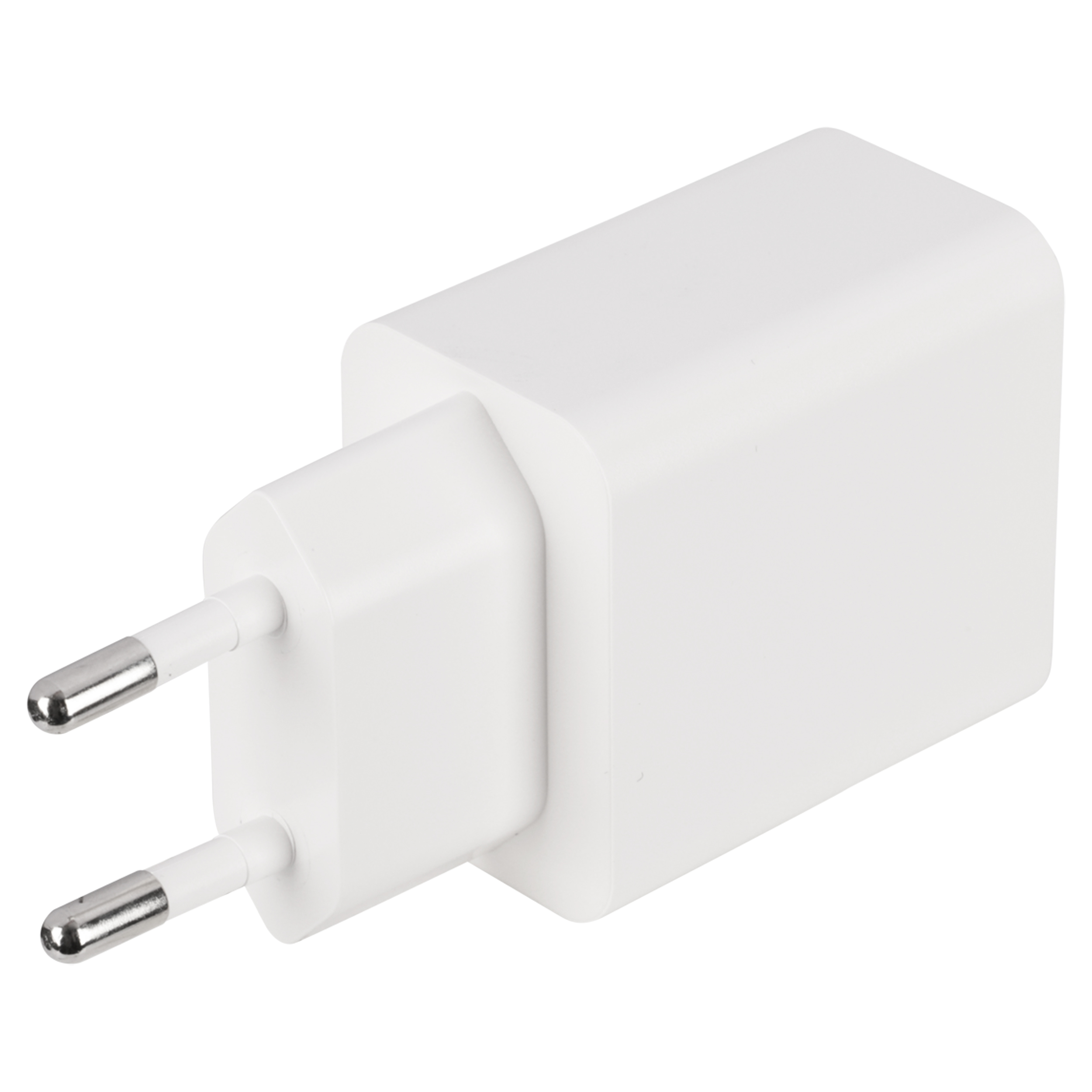 Q-Link duo thuislader met USB-A (18W quick charge)-poort en USB-C (20W power delivery)-poort. Geschikt voor het snel opladen van diverse apparaten zoals smartphones en tablets. Compact ontwerp, ideaal voor thuis- en kantoorgebruik. Kleur: wit.