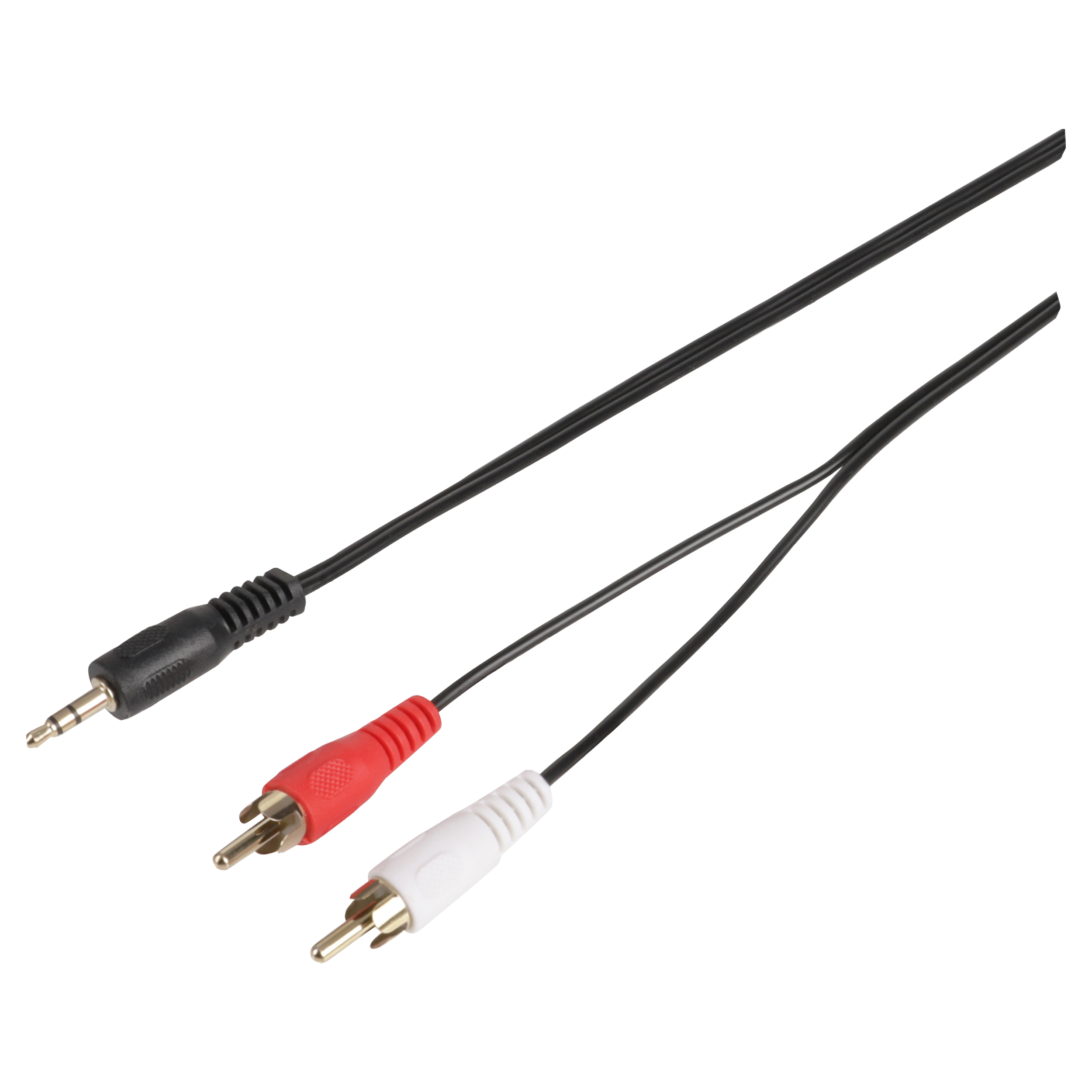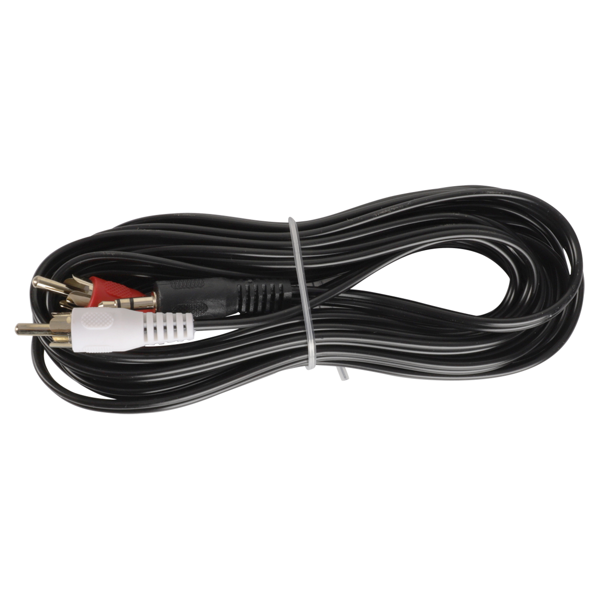 Q-Link tulp kabel, lengte 5 m, geschikt voor het aansluiten van een MP3-speler of andere audioapparatuur op Home-Cinema of HiFi-systemen. Voorzien van een 3,5 mm stereo jack plug naar 2 RCA-aansluitingen (rood/wit) voor stereo-audio.